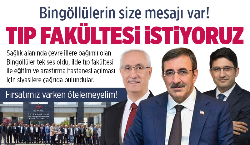 Bingöl halkı olarak sağlık alanında yaşadığımız sorunların kalıcı bir şekilde çözülmesi için, üniversitemiz bünyesinde bir Tıp Fakültesi kurulmasını ve bu fakülteyle entegre şekilde hizmet verecek bir Araştırma Hastanesi'nin açılmasını talep ediyoruz.