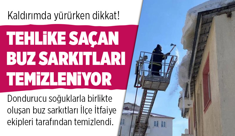 Son günlerin en soğuk günlerini yaşayan Karlıova ilçesinde hava sıcaklıkları sıfırın altında 20 dereceleri gördü. Yoğun kar birikintilerinin olduğu kentte birçok esnaf kepenk açmazken, bina çatılarında ise buz sarkıtları oluştu. Tehlike oluşturan buz sarkıtlarının kırılması için Karlıova Belediyesi harekete geçti. İtfaiye ekiplerince asansörlü merdiven yardımı ile ulaşılan bölgelerdeki buz sarkıtları, güvenlik önlemleri altında temizlendi.
