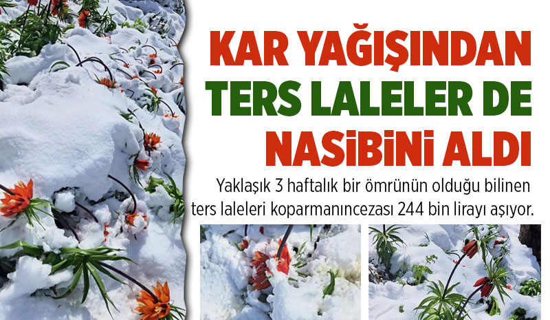 | Bingöl'de ters laleler de kardan nasibini aldıBingöl'de önceki gün etkisini gösteren kar yağışı nedeniyle ters laleler kar altında kaldı. Yaklaşık 3 haftalık bir ömrünün olduğu bilinen ters laleleri koparmanın cezası 244 bin lirayı aşıyor. Meteorolojinin uyarısını yaptığı kar yağışı Bingöl'de etkili oldu. Yer yer 40 santimetreye ulaşan kar kalınlığı nedeniyle vatandaşlar zor anlar yaşadı. Kar yağışından yaban hayatı kadar bitki florası da nasibini aldı. Merkeze bağlı Gökçeli köyünde her yıl açan ters laleler, yağışın ardından kar altında kayboldu. Yaklaşık 3 haftalık bir ömrünün olduğu bilinen ters laleleri koparmanın cezası 244 bin lirayı aşıyor. Görüntüleri Sosyal MedyaHesaplarımızdan İzleyebilirsiniz...