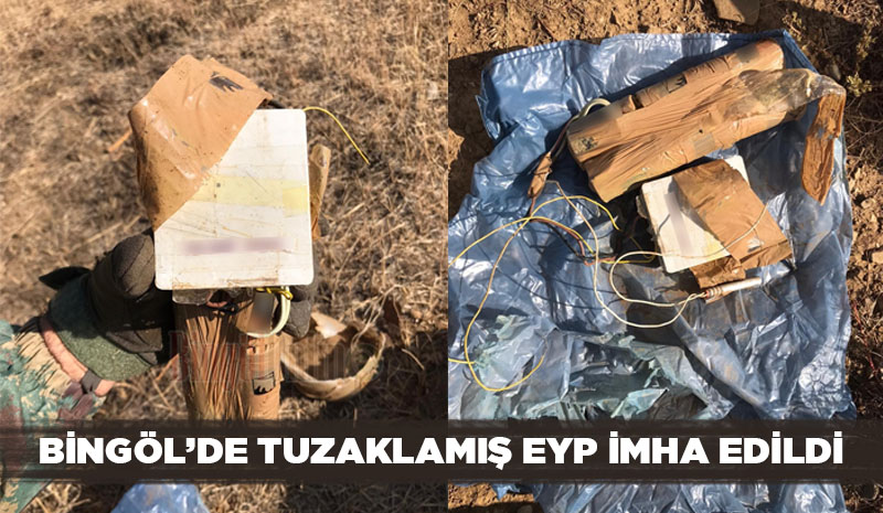 Valilik yaptığı açıklamada, “Bingöl İl Jandarma Komutanlığınca yürütülen çalışmalar neticesinde; 14 Ekim 2021 tarihinde Bingöl İli Adaklı İlçesi kırsalında İl Jandarma Komutanlığı ve Kiğı Jandarma Komando Alay Komutanlığı unsurlarınca icra edilen EREN-4 operasyonu kapsamında yapılan arazi aramasında toprağa gömülü vaziyette metal teneke içerisinde (5) kg plastik El Yapımı Patlayıcı Madde (EYP) düzeneği ele geçirilmiştir. Ele geçirilen El Yapımı Patlayıcı Madde (EYP) düzeneği operasyon bölgesinde imha edilerek kullanılmaz hale getirilmiştir” denildi.