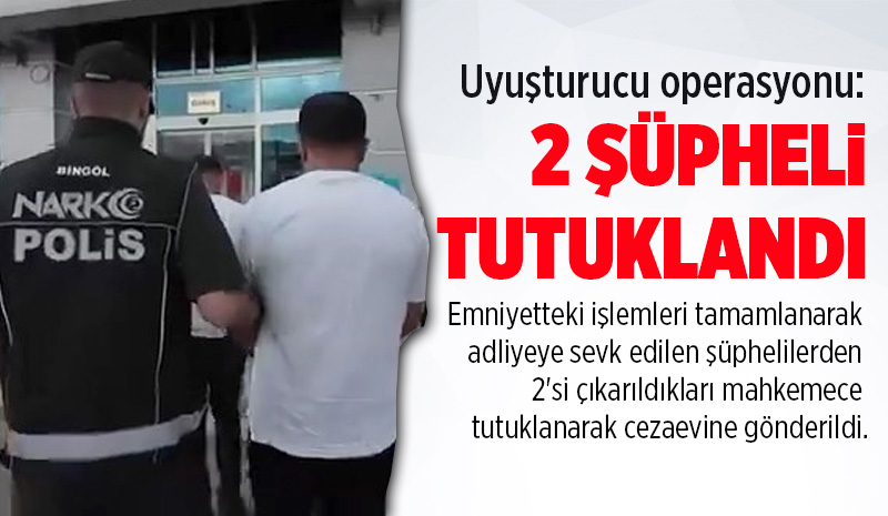 | Bingöl'de uyuşturucu operasyonu: 2 kişi tutuklandıBingöl'de polis ekiplerince yapılan uyuşturucu operasyonunda gözaltına alınan 3 şüpheliden 2'si, tutuklanarak cezaevine gönderildi. Bingöl İl Emniyet Müdürlüğü Narkotik Suçlarla Mücadele Şube Müdürlüğü ekipleri, uyuşturucuyla mücadele çalışmalarını aralıksız sürdürüyor. Bu çerçevede yapılan operasyonda 13,85 gram metamfetamin ve 18,80 gram esrar maddesi ele geçirildi. Operasyonda 3 şüpheli gözaltına alındı. Emniyetteki işlemleri tamamlanarak adliyeye sevk edilen şüphelilerden 2'si çıkarıldıkları mahkemece tutuklanarak cezaevine gönderildi.