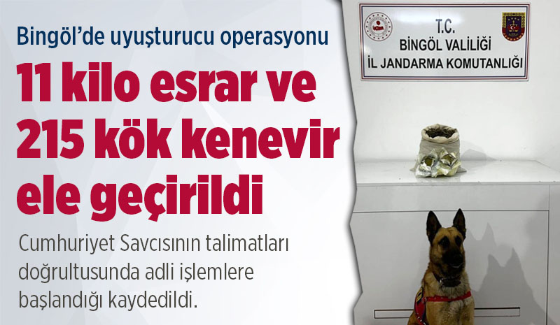 Bingöl'de uyuşturucu operasyonuBingöl'de jandarma ekiplerince düzenlenen uyuşturucu operasyonunda, 11 kilo 350 gram esrar ve 215 kök kenevir bitkisi ele geçirildi.![]() Bingöl İl Jandarma Komutanlığı ekiplerince, 18-21 Ekim 2024 tarihleri arasında uyuşturucu madde imal ve ticareti, yasa dışı kenevir ekiminin önlenmesine yönelik istihbarı çalışma gerçekleştirildi. Yapılan çalışmalar neticesinde, 10 kilo 170 gram kubar esrar maddesi, 1 kilo 80 gram toz esrar maddesi, 215 kök kenevir bitkisi, 1 adet tabanca, 7 adet fişek ve 1 adet şarjör ele geçildi. Cumhuriyet Savcısının talimatları doğrultusunda adli işlemlere başlandığı kaydedildi.
