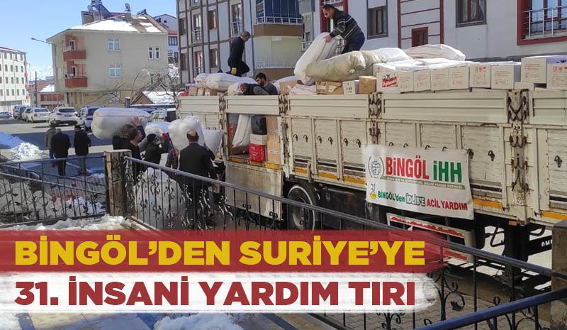Bingöl İnsan Hak ve Hürriyetleri İnsan Yardım Derneği (Bingöl İHH) tarafından kış mevsiminin gelmesiyle Suriye'ye yönelik ‘Rotamız İyilik, Yükümüz İnsanlık' kampanyası kapsamında Bingöl'den toplanan yardımları taşıyan tır Hatay'ın Reyhanlı İlçesinde bulunan İHH Reyhanlı Kriz Koordinasyon Merkezine, oradan da Cilvegözü sınır kapısı üzerinden Suriye'deki mültecilere dağıtmak üzere gönderildi.