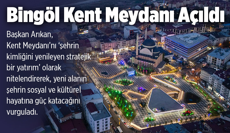 Arıkan: “Kent Meydanı, bizim uzun zamandır üzerinde çalıştığımız, şehrin merkezini güçlendiren bir projeydi. 17.500 metrekarelik geniş bir yaşam alanı oluşturduk. Modern kent mobilyaları, ferah yürüyüş alanları, estetik peyzajı ve 500 araçlık iki katlı kapalı otoparkıyla burası artık Bingöl'ün yeni yaşam merkezi olacak. Şehrin hem estetiğine hem de günlük yaşamına değer katan bir alanı hemşehrilerimizin hizmetine sunmanın mutluluğunu yaşıyoruz.”