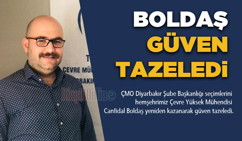Türk Mühendis ve Mimar Odaları Birliği (TMMOB) bileşenlerinden Çevre Mühendisleri Odasının Ağrı, Batman, Bingöl, Bitlis, Diyarbakır, Elazığ, Hakkari, Mardin, Muş, Siirt, Şırnak, Tunceli ve Van illerinden sorumlu olan ÇMO Diyarbakır Şube Başkanlığı seçimlerini güven tazeleyerek ikinci defa hemşehrimiz Çevre Yüksek Mühendisi Canfidal Boldaş kazandı.
