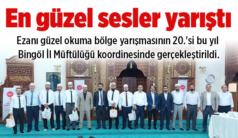 Bingöl İl Müftülüğü koordinesinde gerçekleştirilen 20. ezanı güzel okuma bölge yarışmasına farklı illerden toplamda 7 yarışmacı katılım sağladı. Yarışmada Muş'tan katılan imam-hatip İlyas Çaptuğ birincilik ödülünü kazandı. Program, dereceye giren ve yarışmaya katılan tüm katılımcılara çeşitli hediyeler takdim edilerek sona erdi.