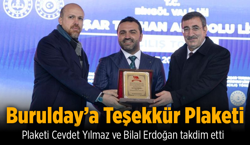 Bingöllü iş insanı Serdar Turhan'ın anne ve babası adına yaptırdığı okul ile Serdar Turhan Kampüsü Çocuk Evleri Sitesi projelerinde görev alan İnşaat Mühendisi Burak Burulday, projeye sunduğu katkılar nedeniyle teşekkür plaketiyle onurlandırıldı.