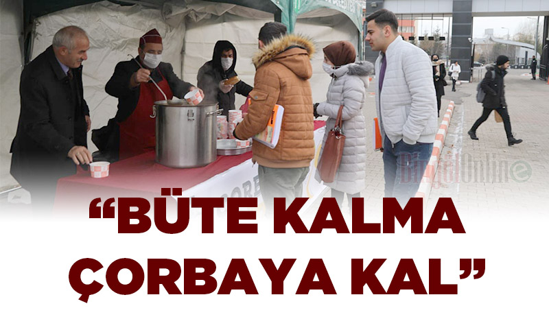 Bingöl Belediyesi, “Büte Kalma, Çorbaya Kal” etkinliği düzenlendi. Bingöl Belediyesi'nin sponsorluğunda Bingöl Üniversitesi nizamiye girişinde sıcak çorba dağıtımı yapıldı. Nizamiye girişine konulan dev çorba kazanlarından öğrencilere kepçe ile çorba dağıtıldı.
