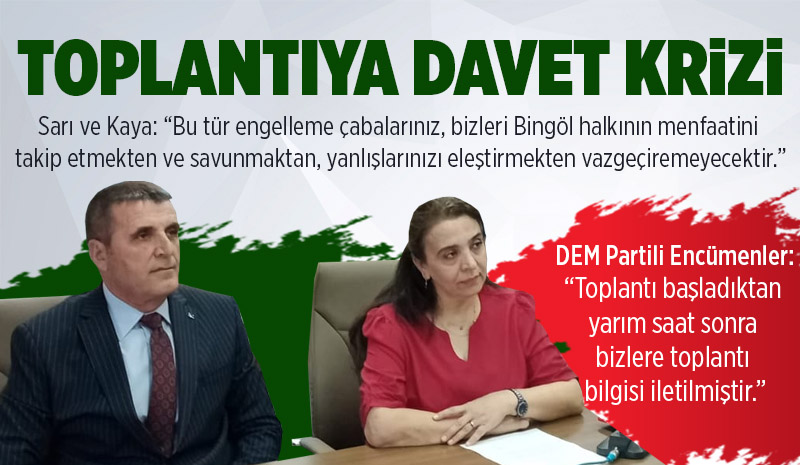 Halkların Eşitlik ve Demokrasi Partisi (DEM Parti) Bingöl İl Genel Meclis Üyeleri Suna Sarı ve Aydın Kaya, Bingöl Valiliği'nce gerçekleştirilen İl Koordinasyon Kurulu Toplantısı başladıktan yarım saat sonra davet bilgisi verilmesine tepki gösterdiler.