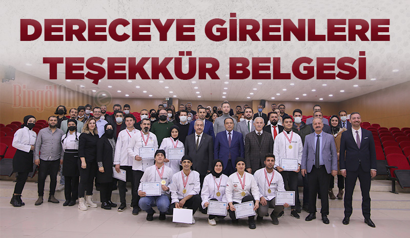 Üniversite Sosyal Bilimler Meslek Yüksekokulu (MYO) Otel, Lokanta ve İkram Hizmetleri Bölümü Aşçılık Programı öğrencileri, 16-21 Kasım tarihleri arasında Diyarbakır'da düzenlenen ‘Diyarbakır 3. Uluslararası Aşçılık ve Pastacılık Yarışması'nda madalya kazanan öğrencilere Rektör Prof. Dr. İbrahim Çapak tarafından teşekkür belgesi verildi.