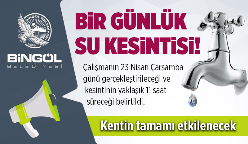 Açıklamada, “Kürük isale hattının Ilıcalar Beldesi Mevkiinde yapılacak deplase çalışması nedeniyle; 23 Nisan 2025 Çarşamba günü 07.00 ile 18.00 saatleri arasında içme suyu kesintisi yapılacaktır. Sabır ve anlayışınız için teşekkür ederiz” denildi.