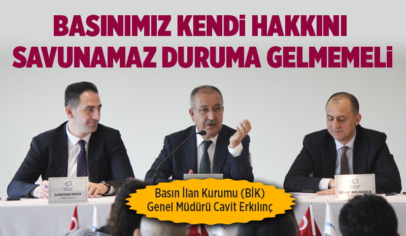 “Hak edene hakkını verirken destek görmüyoruz”İlan adetlerinin artırılması, yeni ilanların sisteme alınması, mevzuat düzenlemeleri, resmî ilan fiyat tarifesi gibi hayati konularda basının güçlü desteğine ve sesini yükseltmesine ihtiyaç duyulduğunun altını çizen Erkılınç, “Öyle bir dönemden geçiyoruz ki Resmi Gazete'ye bakmadan yastığa başımızı koyamıyoruz; ‘ansızın bir gece yarısı ilanlarımız kanuni zorunluluktan çıkar mı?' diye. O saatten sonra kime derdimizi anlatırız bilemiyorum. Bizim çok güçlü durmamız ve birbirimize sımsıkı bağlı olmamız gerekiyor. Şu mahsup meselesini dahi aramızda çözemedik. Gazeteyi basmıyor, dağıtmıyor, personelinin maaşını ödemiyor, gönderilen ilanı yayımlamıyor veya rutin prosedürü yerine getirmiyor; buna karşılık mahsup uyguladığımızda kıyamet kopuyor. Mahsubun karşılığı olan para Kurumun kasasına girmiyor. Gazetesini basan, dağıtan, maaşları gününde ödeyen, gece gündüz çalışarak bize ve okurlarına karşı sorumluluğunu yerine getirenin hakkını veriyoruz. Aldığımız tüm idari kararların özünde hak edene hakkının teslim edilmesi var. Gerçek apaçık ortadayken; mahsup uyguladığımız yayının öfkelenmesi ve suçlayacak birilerini araması gibi refleksleri bir kenara bırakırsak, hakkı yendiği için hakkını teslim ettiğimiz yayınlarımıza ne demeli? Bir taneniz çıkıp da ‘Bizim hakkımız yenmiş, Basın İlan Kurumu da hakkımızı verdi. Kimseyi cezalandırmıyor, adaleti sağlıyor, mesele bundan ibaret' diye yazmıyor veya konuşmuyor. Kurumumuzu, keyfi ilan vermemek yoluyla baskı yapmakla suçlayanlara karşı, ‘Yanılıyorsunuz, aslında o iş size anlatıldığı gibi değil' şeklinde uyarmıyor. Bu da bir kamu görevi değil mi? Bu gerçeği görmezden gelerek Kurumumuzu töhmet altında bırakan veya bırakılmasına müsaade eden paydaşlarımız en büyük zararı yine kendilerine vermektedir. Başkalarının hakkını savunması gereken basınımız, neredeyse kendisini ilgilendiren tüm meselelerde kendi hakkını dahi savunamaz duruma gelmemeli” ifadelerini kullandı. “İnternet sitesi okurları bir günde nereye gitti?”Kurumun son Genel Kurul Toplantısında alınan kararla internet haber sitelerine yönelik asgari ziyaretçi trafiği oranlarını yüzde 50 azalttıklarını belirten Erkılınç, o gün yaptığı konuşmada, karar sonrası bazı internet sitelerinin trafiklerinin yeni asgari rakamlara düşeceğini söylediğini hatırlattı. Sözlerinin bir kehanet içermediğini, aksine “bot” satın alan haber sitelerinin yakinen takip edildiğinin uyarısı ve bilgiye dayalı bir öngörü olduğu kaydeden Erkılınç, sözlerini şöyle tamamladı: “Sizlere sormak istiyorum. İzmir'de 69 bin, Aydın'da 59 bin, Manisa'da 26 bin, Muğla ve Uşak'ta 5 bin internet sitesi okuru bir günde nereye gitti? Allah esirgesin büyük bir felaket yaşandı veya bölge genelinde internet hatları tümüyle arızaya geçti de bizim mi haberimiz olmadı? Cevabını çok iyi bildiğimiz soruları sormaktan açıkçası hicap duyuyorum. Basılı gazetedeki tecrübelerinizi internete taşıyın, buna çok ihtiyacımız var. Ama lütfen, kötü alışkanlıklarımızı bu alana getirmeyin. Bunu yaparsanız sanmayın ki her şeye yeniden başlayabileceğimiz bir mecramız daha ortaya çıkacak.” Erkılınç, 21 Kasım Perşembe günü Bursa'da gazete ve internet haber sitelerinin temsilcileriyle bir araya gelecek.