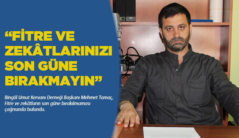 Bingöl Umut Kervanı Derneği Başkanı Mehmet Tamaç, Fitre ve zekâtların son güne bırakılmaması çağrısında bulundu.