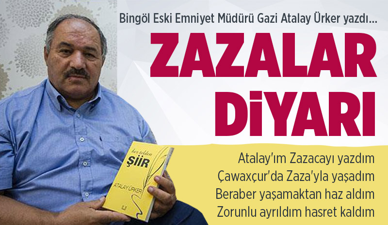 Gazi Atalay Ürker yazdı; Zazalar DiyarıŞiir kitapları yayımlanan Bingöl Eski Emniyet Müdürü Gazi Atalay Ürker, 'Zazalar Diyarı' adlı şiirini paylaştı… Zazaların yaşadığı bölgelere atıf yapan Ürker, 'kaybolma tehlike altındaki diller' kategorisindeki Zazacanın konuşulması tavsiyesine de satır aralarında yer verdi.![]() Bingöl'de teröristlerin 2014'te çarşı merkezinde düzenlediği silahlı saldırıda yaralanan ve yeniden ayağa kalkmak için kendisini şiir yazarak motive edip hayata tutan Bingöl Eski Emniyet Müdürü Atalay Ürker, şiir kitapları çıkardı ve aktif şiir yazımına da devam ediyor. Bingöl'e duyduğu özel sevgi ve bağıyla da bilinen Ürker, Bingöl'e dair şiirlerine bu kez Zazaları da ekledi. “Zazalar Diyarı” başlığıyla paylaştığı şiirinde Zazaların yaşadığı yerlere değinen Ürker, UNESCO tarafından ‘kaybolma tehlike altındaki diller' kategorisindeki Zazaca'nın konuşulması tavsiyesine de satır aralarında yer verdi. İşte Atalay'ın kaleminden o şiir… ZAZALAR DİYARIAdımıza deniliyor Zaza Dilimiz benzemez Kürde, Laza Gelemeyiz biz aşırı naza Zazacayı sorun Elâzığ'a