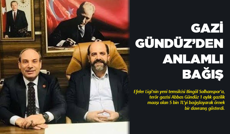 30 Ocak 1996 tarihinde polis memuru olarak görev yaptığı Mardin Nusaybin'de hücre evi baskınında terör örgütü ile girilen çatışmada yaralanarak gazi olan, Devlet Övünç Madalyası alan ve 15 Temmuz Derneği Genel Başkanlığı'nı yürüten Abbas Gündüz, bir aylık gazilik maaşı olan 5 bin TL'yi Efeler Ligi'nde mücadele eden Bingöl Solhan Spor'a bağışladı.