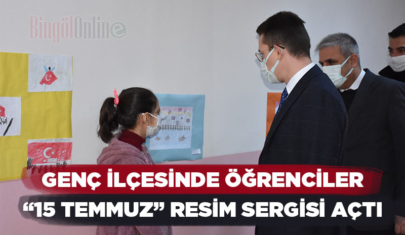 Genç ilçesinde ilkokul öğrencileri, 15 Temmuz Demokrasi Zaferi ve Milli Birlik Günü konulu resim sergisi açtı. Yunus Emre İlkokulu öğrencileri tarafından hazırlanan serginin açılışına, İlçe Kaymakamı Yusuf Kaptanoğlu, Genç Belediyesi Başkanı Mehmet Zeki Dirik, İlçe Milli Eğitim Şube Müdürü Kenan Baysal, öğretmen ve öğrenciler katıldı.
