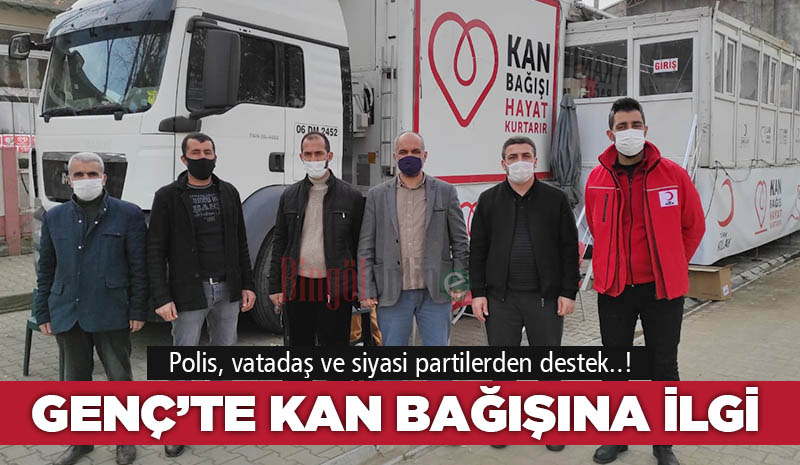 Kızılay'ın Güneydoğu Anadolu Bölge Kan Merkezi'nden Genç'e gelen Kan Bağış Aracı, Genç Belediyesi önünde vatandaşlardan kan bağışı topladı. İlçe Emniyet Müdürü, AK Parti İlçe Teşkilatı, Hüda Par İlçe Teşkilatı ve ilçe halkının katıldığı kampanyada iki günde 105 ünite kan bağışı yapıldı.