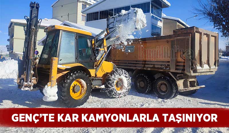 Genç ilçesinde 2 gündür etkili olan etkili olan kar nedeniyle, belediye ekipleri yoğun mesai yaparak karları kamyon kamyon ilçe dışına taşıyor.