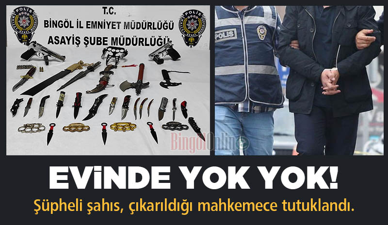Gözaltına alınan şahıs tutuklandı!Ateşli Silahlar ve Bıçaklar İle Diğer Aletler Hakkında Kanun'a muhalefet suçundan gözaltına alınan şahsın ikametinde yapılan aramada çok sayıda muşta, bıçak ve silah ele geçirildi. Şahıs, sevk edildiği mahkemece tutuklandı.![]() İl Emniyet Müdürlüğü Asayiş Şube Müdürlüğü ekiplerince yapılan çalışmalarda Kamu düzeninin sağlanması için suç ve suçlularla mücadele kapsamında yürütülmekte olan “Tehdit- 6136 Sayılı Ateşli Silahlar ve Bıçaklar İle Diğer Aletler Hakkında Kanuna Muhalefet” suçları ile ilgili olarak olaya karıştığı tespit edilen (S.B.) isimli şüpheli şahıs, 09.03.2021 günü yakalanarak gözaltına alındı. Bingöl Sulh Ceza Hâkimliği'nin kararına istinaden şüpheli (S.B.)'nin ikametinde yapılan aramada; 4 adet muşta, 17 adet çeşitli marka ve modellerde bıçak, 1 adet balta, 2 adet hançer, 1 adet oluklu balta, 1 adet komando bıçağı, 1 adet kama, 3 adet sustalı bıçak, 1 adet kurusıkı tabanca ve tabancaya ait 1 adet şarjör ve 19 adet fişek, 1 adet havalı tabanca 1 adet şarjör 20 adet fişek, 2 adet MKE yapımı 9 mm fişek, 1 adet ön kısmı kesici ve delici muşta elde edilmiş olup, 10.03.2021 günü adli makamlara sevk edilen şüpheli (S.B.), çıkarıldığı mahkemece tutuklandığı belirtildi.