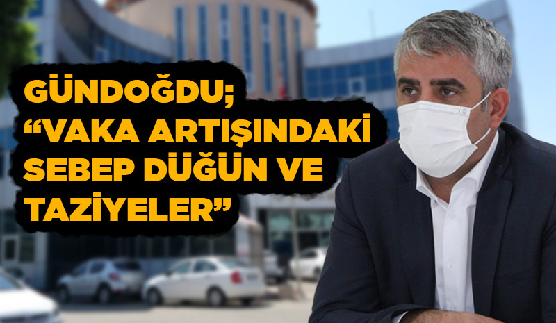 Vaka artışında düğün ve taziyeleri işaret eden Gündoğdu, “1 Temmuz'dan itibaren özellikle düğünlerin serbest olmasıyla beraber geçen yılda vatandaşların düğünleri bu yıla ertelemeleriyle beraber çok yoğun bir düğün trafiğinin olduğunu görüyoruz. Bu düğünlerde de maalesef vatandaşların maalesef el tutuşması, çok kalabalık ortamların oluşmasından dolayı virüsün çok hızlı yayıldığını sahada görmüş olduk. Taziyeler de aynı şekilde. Kültürümüzün uç iki parçası olan düğünler ve taziyeler çok yoğun geçmekte. Maalesef bunlarda tokalaşma, sarılma gibi eylemlerden dolayı da virüs çok hızlı bir şekilde vatandaşlar arasında yayılmakta. Özellikle son bir ay içinde vakaların bu kadar hızlı artmasının sebebi olarak düğünler ve taziyeler olduğunu söyleyebiliriz” şeklindeki açıklamalara yer verdi.