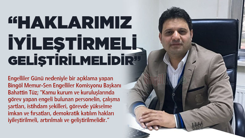 'Haklarımız iyileştirmeli, geliştirilmelidir'Engelliler Günü nedeniyle bir açıklama yapan Bingöl Memur-Sen Engelliler Komisyonu Başkanı Bahattin Tüz: 'Kamu kurum ve kuruluşlarında görev yapan engeli bulunan personelin, çalışma şartları, istihdam şekilleri, görevde yükselme imkan ve fırsatları, demokratik katılım hakları iyileştirilmeli, artırılmalı ve geliştirilmelidir.'![]() 3 Aralık Dünya Engelliler Günü nedeniyle bir açıklama yapan Bingöl Memur-Sen Engelliler Komisyonu Başkanı Bahattin Tüz, sendika olarak engelli bireylerin taleplerine ses verilmesi gerektiğini belirtti. Taleplerini sıralayan Tüz, emekli engelli bireylerin maaşlarının en son ödenen görev maaşından yüzde 85'inden az olmamasının sağlanması gerektiğini vurgulayan Tüz, şartların iyileştirilmesi gerektiğini söyledi. Tüz, açıklamasında şunları söyledi: “Kamu kurum ve kuruluşlarında görev yapan engeli bulunan personelin, çalışma şartları, istihdam şekilleri, görevde yükselme imkan ve fırsatları, demokratik katılım hakları iyileştirilmeli, artırılmalı ve geliştirilmelidir. Malulen emeklilikte bağlanacak emekli aylığı tutarı ile emekli ikramiyesinin 25 yıl esas alınarak ödenmesi, emekli aylığının tutarının, en son alınan görev maaşının %85'inden az olmaması sağlanmalıdır. Maluliyete ve engelliliğe dair sağlık raporu uygulamalarında Sağlık Kurullarının tekleştirilmesi, işlemlerin hızlandırılması yönünde düzenleme yapılmalıdır. Rapora itiraz süreçlerinde bireylere zaman ve mali kaynak bakımından külfet üreten uygulamalar kaldırılmalıdır. Engeli bulunan bireylerin sosyal hayata uyumu ve katılımı noktasında son derece önemli olan protez, ortez ve yardımcı araç-gereçlerin teminine, kullanım süresine, fiyatlamasına ve Sosyal Güvenlik Kurumu tarafından karşılanan tutar ve oranlara yönelik külfet azaltıcı, hak artırıcı düzenleme yapılmalıdır. Sağlık uygulama tebliğine ilişkin komisyonlarda, çalışmalarda, sağlık kurullarında ve buna dair iş, işlem ve karar üreten kurum ve kuruluşlarda yetkili Konfederasyon temsilcisi sıfatıyla engeli bulunan bireylerinde temsilinin sağlanması gereklidir. Engellilere yönelik; eğitim sorunları ve çözüm önerileri, yanlış mesleki eğitim ve istihdam sistemleri, engellilik tespitlerinde erken teşhis ve genetik uzmanlığı/analizleri, özelliklemutantvemutasyonuğrayanbireylerdekökhücretedavisineönemverilmesi, engelliler için teknolojik işlemler sadece tıp sektöründe değil, diğer alanlarda da fayda sağlayacak şekilde irdelenmesi, engellilerin ulaşım araçları ile imtihanından başarı ile çıkması için daha çok gayret gösterilmesi, Down Sendromu ile ilgili yanlış uygulamaların, ifadelerin tekrar gözden geçirilmelidir. İşitme engeli bulunan bireylerin dil gelişiminin sağlanması ve bu konuda eğitmen sayısının yeterli düzeye ulaşması noktasındaki eksiklik dikkate alınarak, gerekli tedbirler alınmalıdır. ÖTV muafiyetine ilişkin yeniden düzenleme yapılarak, 303.200 TL tutarındaki sınırlama artırılmalı, kararın alınmasına yönelik çalışma, muafiyet süre sınırının arıtılmasıyla birlikte sınırlama tutarı artırılmalıdır. Kamu kurum ve kuruluşlarında sağlanan servis hizmetinin, engeli bulunan bireyler yönüyle kullanılabilirliği sağlanmalıdır.” YORUM YAZIN