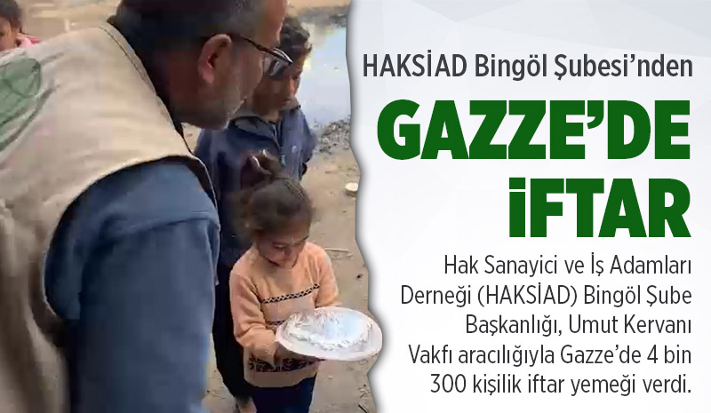 Hak Sanayici ve İş Adamları Derneği (HAKSİAD) Bingöl Şube Başkanı Abdullah Kaya, Umut Kervanı Vakfı aracılığıyla Filistin (Gazze)'de 4 bin 300 kişilik iftar yemeği verdiklerini söyledi.