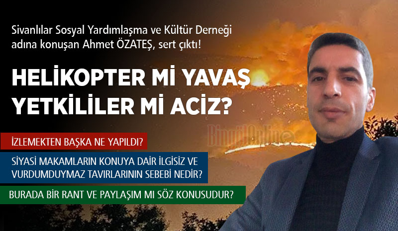 25 Haziran 2021 Cuma gününden itibaren Bingöl'ün Genç İlçesi Sivan bölgesinde (Güzeldere ve Dedebağ köylerinde) meydana gelen orman yangıyla ilgili en sert açıklama Sivanlılar Sosyal Yardımlaşma ve Kültür Derneği'nden geldi. Dernek Yönetim Kurulu Adına açıklamayı yapan Ahmet Özateş, ihmaller zincirini sıralayıp önemli noktalara dikkat çekti ve suç duyurusunda bulunacaklarının altını çizdi.