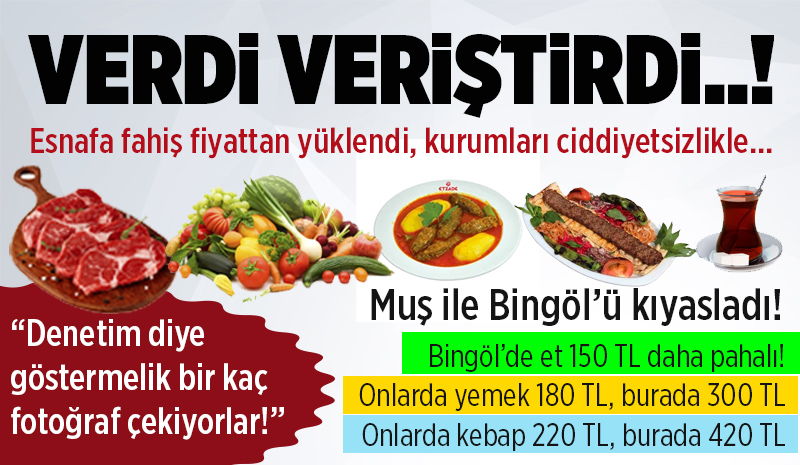 Yanı başımızdaki Muş'ta kebap fiyatı 220 TL, Bingöl'de ise 420 TL. Orada bir tabak yemek 180 TL, burada 300 TL. Lokantalar kafalarına göre fiyat belirliyor. 5362 sayılı yasaya göre fiyat tarifeleri alınmalı ve işyerine asılmalı.”