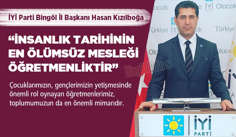 İYİ Parti Bingöl İl Başkanı Hasan Kızılboğa, Öğretmenler gününün bir gün değil her zaman kutlanması gerektiğini ve her zaman değer verilmesi gerektiğini belirtti.
