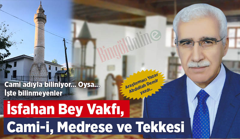 İsfahan Bey Vakfı, Cami-i, Medrese ve TekkesiAraştırmacı Yazar Abdullah Demir, Bingöl'de cami adıyla bilinen İsfahan Bey'i kaleme aldı. Bingöl Detay Dergisi'nde yayınlanan makalede önemli bilgiler paylaşan Demir, vakıf mallarının nasıl zimmete geçirildiğine de dikkat çekti...![]() Çapakçur Emiri İsfahan Beyʹin hayatı ve ölümü İsfahan Bey, Süveydi Zaza Beylerinden Abdal Beyʹin en büyük oğullarından olup 1515 yılında Çapakçurʹun Osmanlı hâkimiyetine geçmesinden sonra İdris-i Bitlis ve Diyarbakır Beylerbeyi Bıyıklı Mehmed Paşa tarafından Çapakçur Hâkimi ve Emiri olarak ataması yapılmış, kardeşi Sultan Ahmed de Genç ve Hançuk Emirliğine tayin edilmiştir. Diyarbakır, 1515 yılında Safeviler'den tamamen alındıktan sonra Yavuz Sultan Selim, Edirne'den İdris-i Bitlisi ve Mehmed Paşa'ya boş beratlar göndermiştir. İdris-i Bitlisi ve Mehmed Paşa, ataması yapılması gereken yerel Kürd beylerinin hâiz oldukları nüfuzlarına göre, elkâb ve unvanları, daha önce mutasarrıf oldukları sancaklarına ataması yapılarak beratları verilmiştir. Aynı zamanda ataması yapılan beylerin hangi sancaklara ataması yapılmışsa deftere kayıt edilerek merkezi hükümete bildirilmiştir. İsfahan Bey Çapakçur sancağına ve Sultan Ahmed Genç ve Hançuk livasına atanmıştır. Kısa bir süreliğine kardeşler arasında becayiş olmuş ve Sultan Ahmet Çapakçurʹa, İsfahan Bey de Genç sancağına atamaları yapılmıştır. Daha sonra tekrar bir değişim yapılarak İsfahan Bey tekrar Çapakçur emirliğine getirilmiş ve kardeşi Sultan Ahmed de Genç livasına atanmıştır.