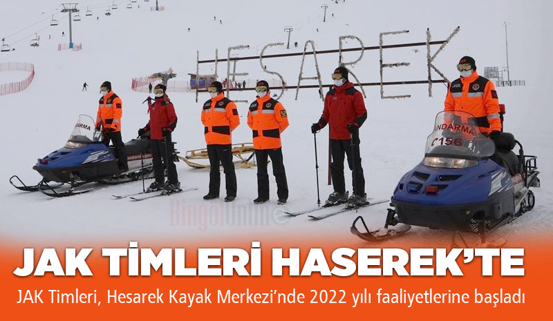 JAK Timlerinin Hesarek Kayak Merkezi'nde 2022 yılı faaliyetlerine başladığı bildiren Bingöl Valiliği: “Jandarma Arama Kurtarma; çığ, deprem gibi doğal afetlerde arama – kurtarma faaliyetlerini yürütmek, kış turizm merkezlerinde emniyet ve asayişin sağlanması, olumsuz hava ve arazi koşullarında yaralıların tahliye edilmesi, doğa sporları yapılan ormanlık bölgelerde önleyici kolluk faaliyetleri icra etmektedir. Geçtiğimiz 2021 yılı içerisinde de Bingöl Hesarek Kayak Merkezinde görev yapan Jandarma Komando Özel Asayiş Komutanlığına bağlı (1) Jandarma Arama Kurtarma (JAK) Timi (95) yaralanma, (316) pistte mahsur kalma, (2) yolda mahsur kalma ve (1) yamaç paraşütünün telesiyejde mahsur kalma olayına müdahale etmiştir. Bingöl İl Jandarma Komutanlığınca 2022 yılında yerli ve yabancı turistin kış tatilini geçirmek için geldiği Hesarek Kayak Merkezinde misafirlerin rahat bir tatil geçirebilmeleri için Jandarma Arama Kurtarma (JAK) Timi Jandarma Genel Komutanlığından talep edilerek, kayaklı ve motorize ekipleriyle tekrar görevlendirilmişlerdir. Bingöl İl Jandarma Komutanlığı, emniyet ve asayiş ile kamu düzeninin sağlanması kapsamında arama, kurtarma ve önleyici kolluk faaliyetlerini kararlılıkla sürdürecektir” açıklamasında bulundu.