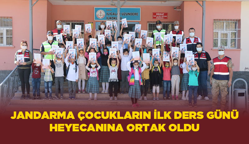 İl Jandarma Komutanlığı'ndan yapılan açıklamada, “Bingöl İl Jandarma Komutanlığı personeli, 2021-2022 yüz yüze eğitim dönemine başlayan sorumluluk sahamızda bulunan öğrencileri okul girişi ve sınıflarında çeşitli hediyelerle karşılayarak, okula başlama coşkusunu birlikte paylaştılar. Bingöl İl Jandarma Komutanlığı personelimiz tarafından çocuklara maske, mesafe, hijyen konularında ve servislerde emniyet kemerlerinin takılı olması gerektiği hakkında farkındalığı arttırmak amacıyla uyarılarda bunulmuştur. Çocuklar, ekiplerin beraberinde getirdikleri dedektör köpeklerin gösterisini izledikten sonra dedektör köpekleri sevip, fotoğraf çektirerek, güne yüksek moral ve motivasyonla başladılar” denildi.