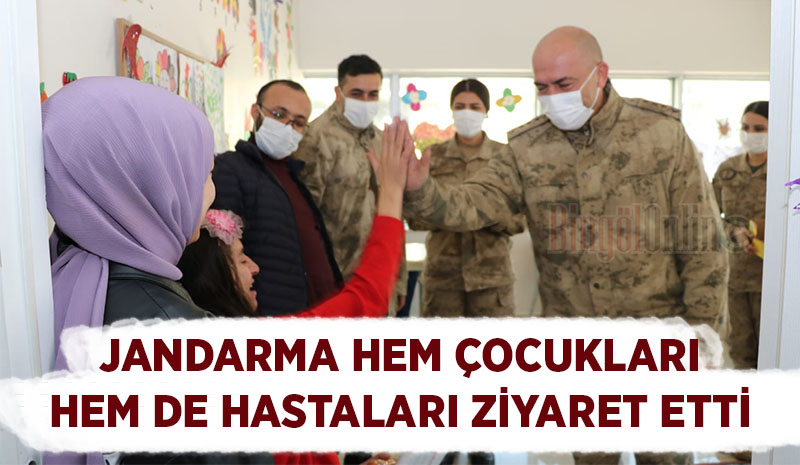 Jandarma hem çocukları hem de hastaları ziyaret ettiBingöl İl Jandarma Komutanlığı'nda görevli personel, hem engelli çocukları hem de hastanelerde yatan hastaları ziyaret ederek sohbet etti, hediyeler verdi.![]() Bingöl İl Jandarma Komutanlığı personeli, yeni yıl programları kapsamında çeşitli ziyaretler gerçekleştirdi. Ziyaretler kapsamında merkezde bulunan bir rehabilitasyon merkezini ziyaret eden personel, engelli çocuklarla sohbet ederek onlara çeşitli hediyeler verdi. Daha sonra Bingöl Devlet Hastanesi'nde tedavi gören hastaları ziyaret eden personel, geçmiş olsun dileklerini sunarak hastalarla sohbet etti.