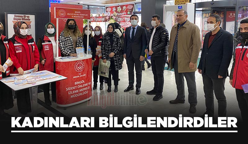 25 Kasım Kadına Yönelik Şiddete Karşı Uluslararası Mücadele Günü etkinlikleri kapsamında Bingöl Aile ve Sosyal Hizmetler İl Müdürlüğü'ne bağlı Şiddet Önleme ve İzleme Merkezi ile Kadın Konukevi personelleri tarafından bir alışveriş merkezinde farkındalık çalışması yapıldı. Yapılan çalışmada stant kurularak, kadınlara broşürler dağıtılıp KADES hakkında bilgilendirme yapıldı.