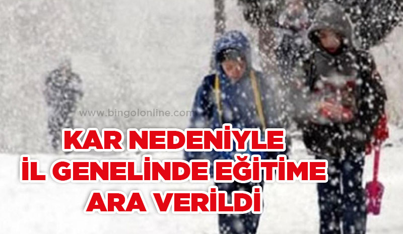 Kar nedeniyle il genelinde eğitime ara verildiBingöl'de yoğun kar yağışı nedeniyle 13 Şubat Perşembe günü il genelinde eğitime 1 gün süreyle ara verildiği açıklandı.![]() Valilik tarafından yapılan açıklamada, “ Devam eden yoğun kar yağışı ve olumsuz hava koşulları nedeniyle il merkezi ve ilçelerimizdeki tüm okullarımızda 13.02.2020 Perşembe günü eğitim ve öğretime 1 gün süre ile ara verilmiştir. Kamuda çalışan engelli ve hamile personel de aynı gün idari izinli sayılacaktır” denildi. YORUM YAZIN
