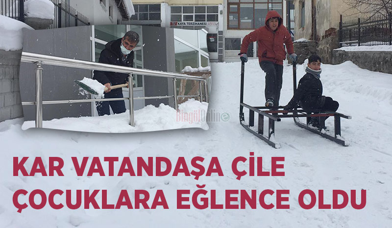 Kar yağışı çocuklara eğlence olurken, vatandaşa da çile oldu. Vatandaşlar hem ev hem de işyerlerinin önleri kürekle temizlemeye başladı.