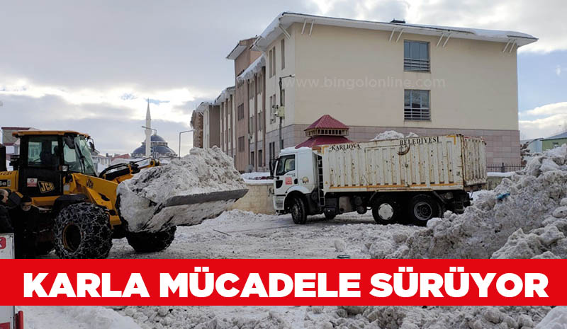 Kar yağışının etkili olduğu Karlıova ilçesinde de belediye ekipleri, kar temizliği çalışmalarına yoğun bir şekilde devam ediyor. İlçe merkezinde kepçelerle belirli bir noktaya toplanan kar, belediye ait kamyonlarla şehir dışına taşınıyor.