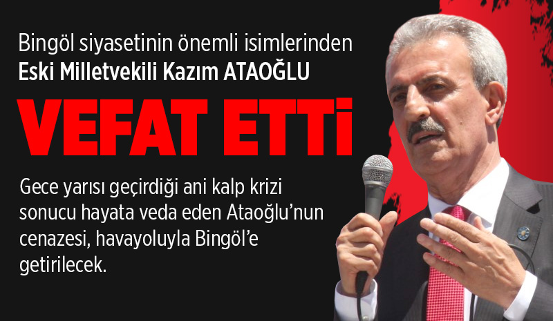 Bingöl'de siyasetin en ende gelen aktörlerinden, eğitimci, siyasetçi, 19, 20 ve 23'üncü dönem Bingöl Milletvekili Kazım Ataoğlu, gece yarısı Ankara'daki ikametinde geçirdiği kalp krizi sonucu hayatını kaybetti.