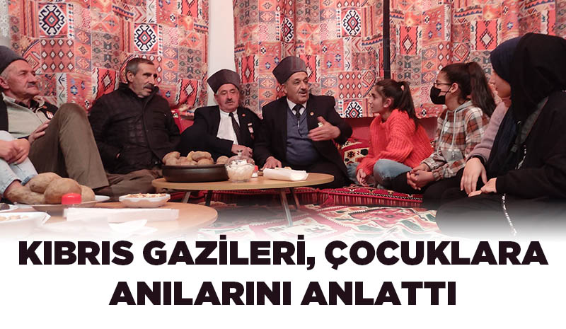 Kıbrıs Gazilerinden Musa Budraç, Mahmut Aydın, Halil Bayram ve M. Rıza Budak, çocuklara Kıbrıs Barış Harekatı'nı anılarını anlattı.