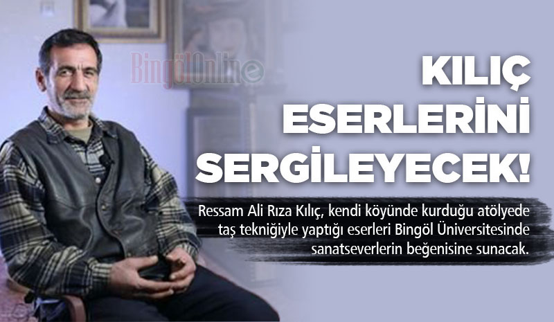 Ressam Ali Rıza Kılıç, 18 Ekimde Bingöl Üniversitesi Recep Tayyip Erdoğan Kongre Merkezimde sergi açacak. Sanat yaşamı boyunca 29 sergiye imza atan sanatçının sergisi on gün sürecek. Bingöl'ün merkeze bağlı Kuruca köyünde kurduğu atölyede taş tekniğiyle yaptığı eserleri Bingöl Üniversitesinde sanatseverlerin beğenisine sunacak olan sanatçı yaklaşık bir buçuk yıldır bu sergiye hazırlandı.