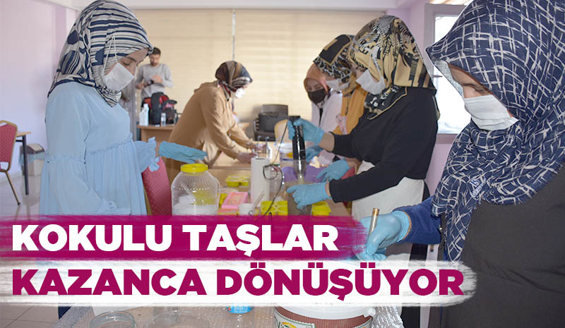 Kısa sürede kadınlar, hamur haline getirdikleri sabunlara şekil verirken, kokulu taştan ise hediyelik eşya yaparak hem meslek öğrendi, hem bütçelerine katkı sağlamaya başladı.