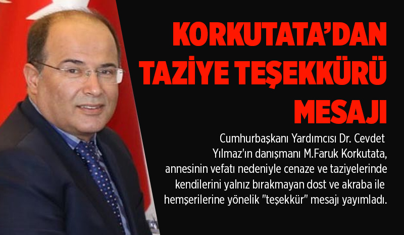 Cenaze ve taziyelerinde kendilerini yalnız bırakmayan dost ve akraba ile hemşerilerine yönelik "teşekkür" mesajı yayımlayan Cumhurbaşkanı Yardımcısı Dr. Cevdet Yılmaz'ın danışmanı Mehmet Faruk Korkutata, şu ifadeleri kullandı;