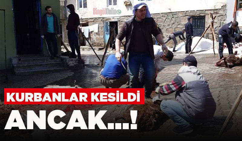 Bingöl'ün Solhan ilçesine bağlı Hazarşah Köyü'nde, koronavirüs salgınının sona ermesi için köylülerce bağışlanan ve satın alınan 56 kurban kesilerek dağıtıldı.