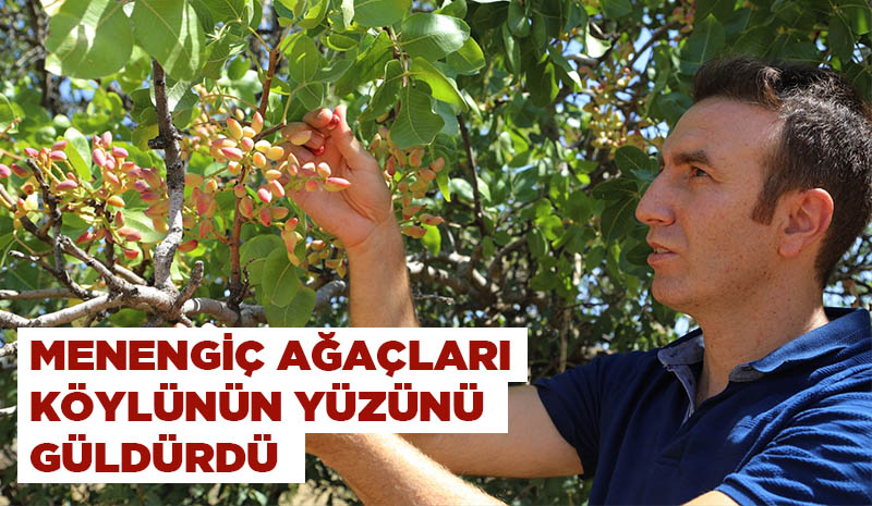 Çiftçi Sedat Dinç, köydeki 1200 menengiç ağacına Antep fıstığı aşısı yapıldığını, bunlardan 800'ünden fıstık alındığını söyledi.
