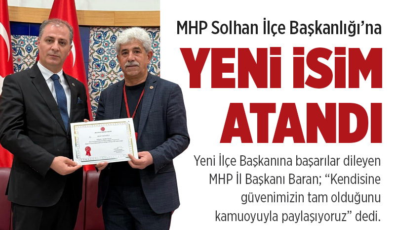 “Yeni görevlendirme ile birlikte partimizin Solhan'daki teşkilatlanma çalışmalarının daha da güçlenerek devam edeceğine inancımız tamdır” diyen İl Başkanı Baran;