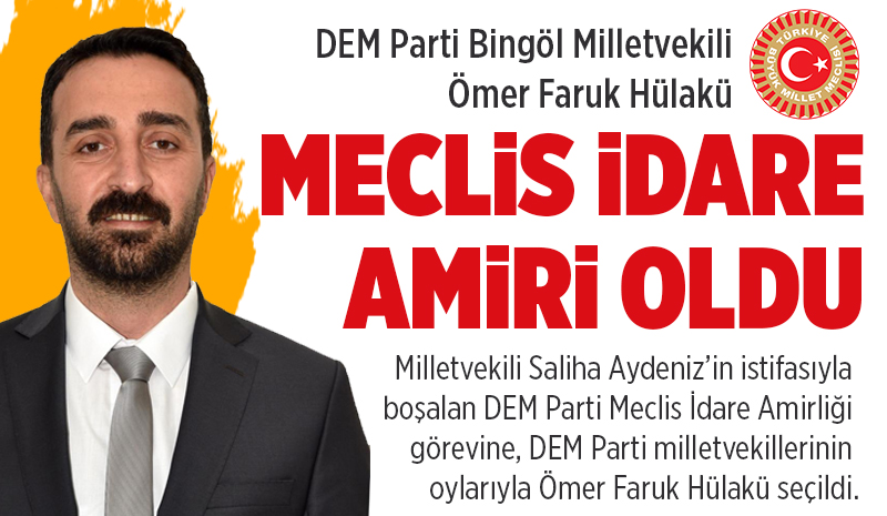 Milletvekili Saliha Aydeniz'in istifasıyla boşalan DEM Parti Meclis İdare Amirliği görevine, DEM Parti milletvekillerinin oylarıyla Ömer Faruk Hülakü seçildi.