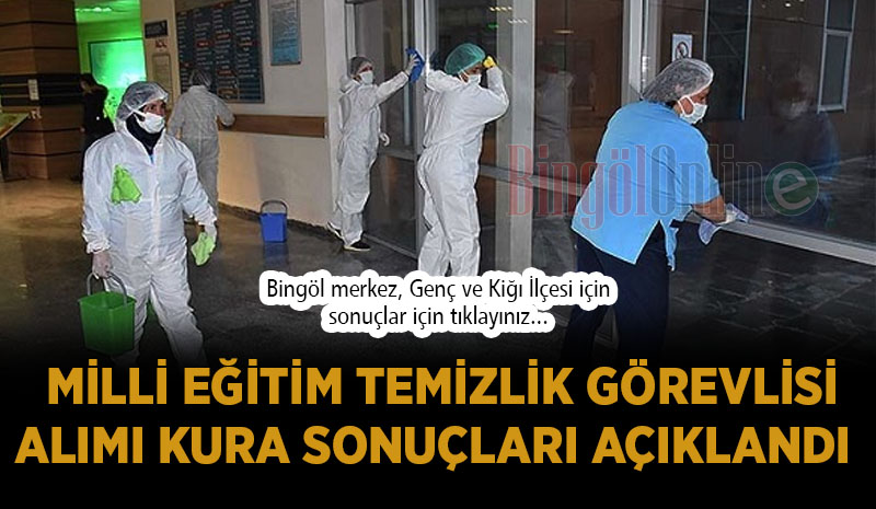 Milli Eğitim temizlik görevlisi alımı kura sonuçları açıklandıBingöl merkez, Genç ve Kiğı İlçesi için sonuçlar açıklanırken, diğer ilçelerin sonuçlarının da kısa sürede kura çekilerek açıklanacağı belirtildi.![]() Bingöl Çalışma ve İş Kurumu (İŞKUR) Müdürlüğü, İl Milli Eğitim Müdürlüğü bünyesinde 137, Aile ve Sosyal Hizmetler İl Müdürlüğü bünyesinde 7 ve İl Müftülüğü bünyesinde ise 5 kişi geçici olarak istihdam edileceğini açıklamıştı. İl Milli Eğitim Müdürlüğü kuraları çekilmeye başlandı. Bingöl merkez, Genç ve Kiğı İlçesi için sonuçlar açıklanırken, diğer ilçelerin sonuçlarının da kısa sürede kura çekilerek açıklanacağı belirtildi.