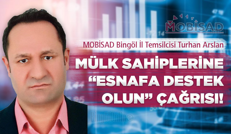 MOBİSAD Bingöl İl Temsilcisi Turhan Arslan, pandemi döneminden etkilenen esnafların bu zor süreci atlatması adına mülk sahiplerini destek olmaya davet etti.