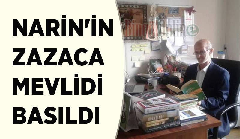 Narin'in Zazaca Mevlidi BasıldıAbdullah Narin tarafından 2017 yılında yazılan Zazaca mevlit, Vir Yayınları tarafından basıldı.![]() Gençli emekli öğretmen Abdullah Narin tarafından 2017 yılında yazılan Mewlidê Nebi isimli eser, Zazaca kitap yayıncılığı yapan Vir Yayınları tarafından basıldı. Vir Yayınları tarafından yayınlanan Mewlidê Nebi kitabı 64 sayfadan oluşuyor. Kitapta hem Arapça harfli metin hem de Latin harfli metin karşılıklı yer alıyor. Mevlidin sonunda ise Narin tarafından elyazması olarak hazırlanan nüsha yer alıyor. YORUM YAZIN