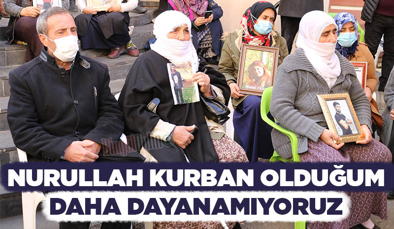 Anne Hüpriye İğne, HDP'yi, sorumlu tutarak oğlunun kaçırıldığını öne sürdü. Evladı için geldiğini belirten anne İğne, “Tam 7 senedir bir haber alamıyorum. Bir ses çıkmadı, bize yol göstermiyorlar. Bizde bu aileleri televizyonda gördük buralara kadar geldik. Nurullah kurban olduğum, daha dayanamıyoruz. Annem, çok geç oldu. Ne olduysa çocuğu biranda kandırdılar, götürdüler biz çocuğu bir daha görmedik” dedi.